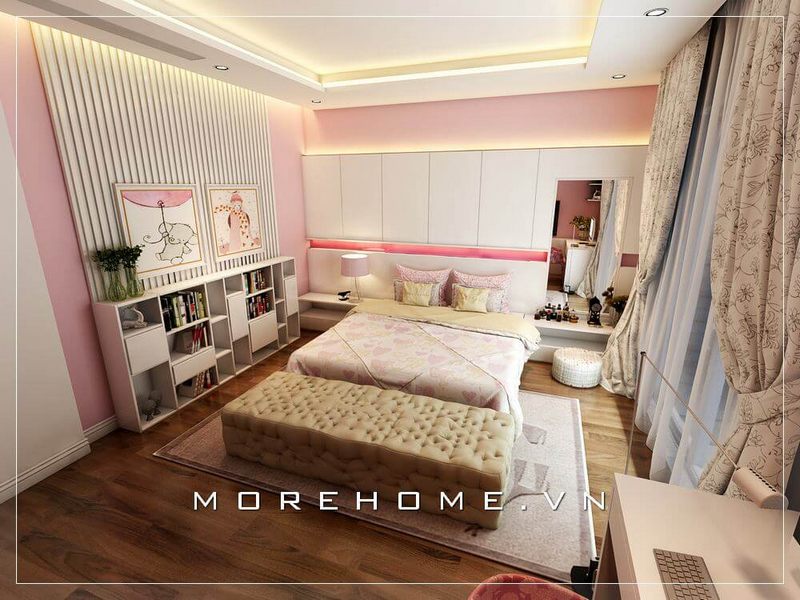 Mẫu thiết kế nội thất phòng ngủ con gái đẹp, hiện đại và đầy đủ tiện nghi.