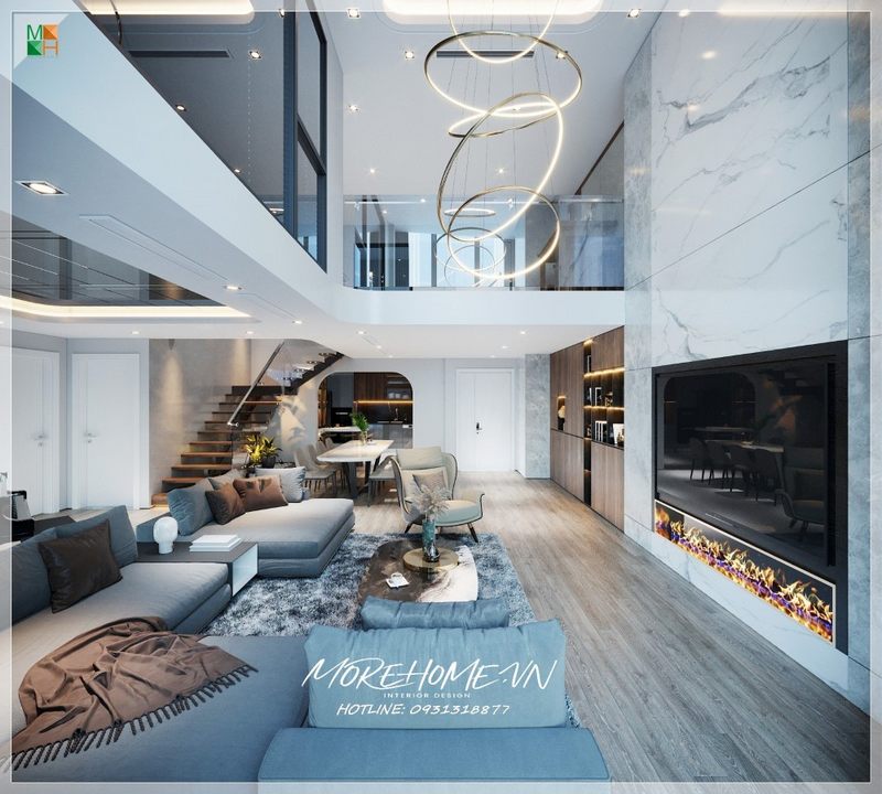 Một mẫu thiết kế phòng khách hiện đại được tạo ra để phù hợp với căn hộ sang trọng, đẳng cấp. Tone màu xám của nội thất độc đáo được kết hợp với nhau để tạo nên một không gian hài hòa, ấm cúng và thu hút.